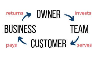 Then the cycle continues, for this profit can fund further investment in the team, allowing them to keep on growing and developing, and delighting the customers even more.